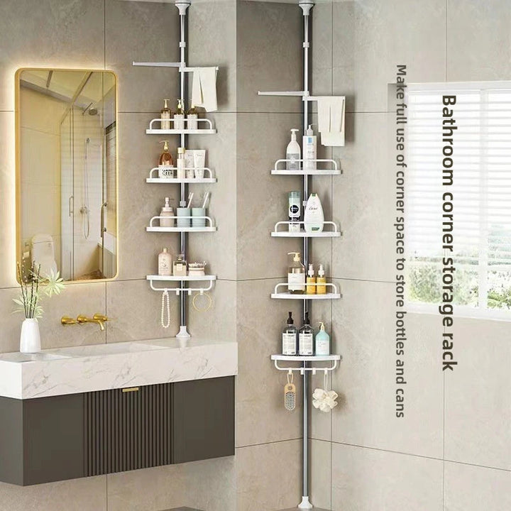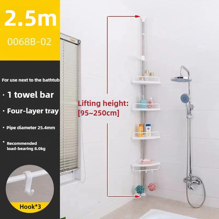 Thickened Bathroom Tray Stainless Steel Adjustable Shower Rod Sturdy Ceiling-to-FloorOrganizer Corner Shelf with DrainageHoles