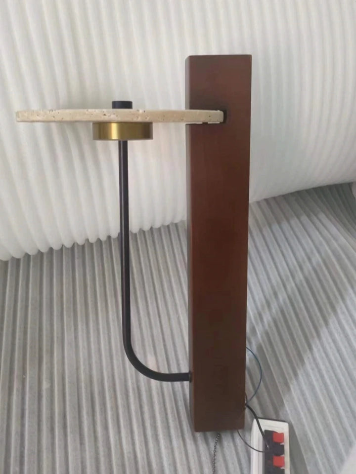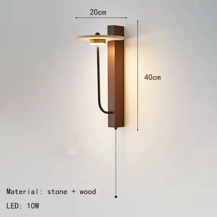 Creative Round Natural Stone Wall Light Dark Wood 3000K For Hotel Bedroom Parlor Art Deco Sconce