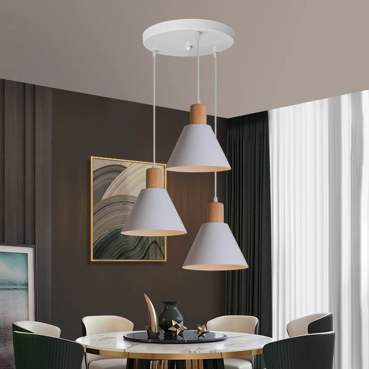 Dining Table Pendant Light Lampshade Wood Ceiling Chandelier Kitchen Island Bedroom Modern Suspension Pendant Lamp 1/3 Heads