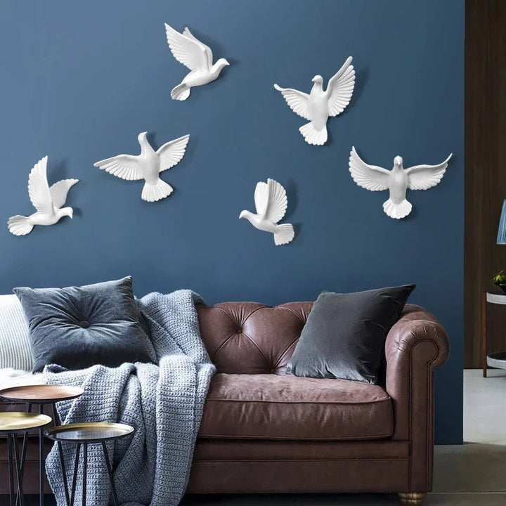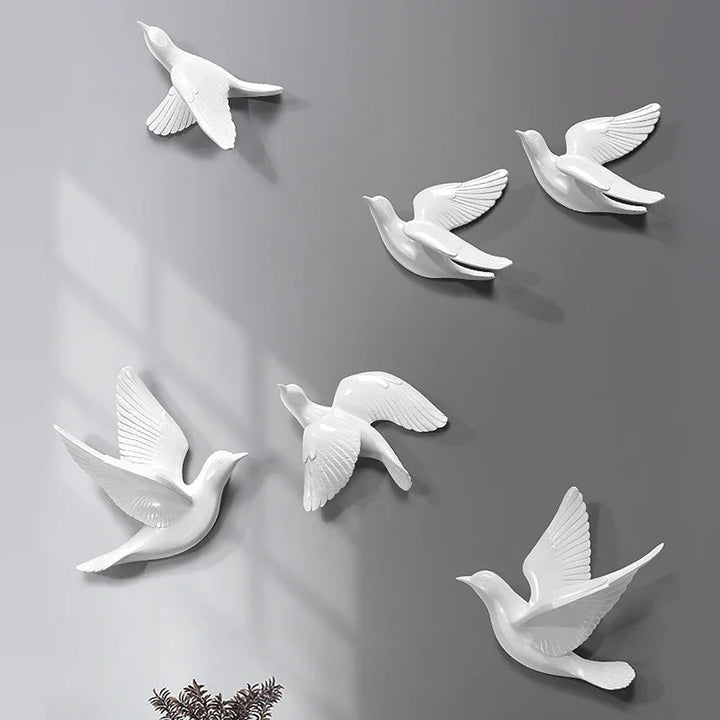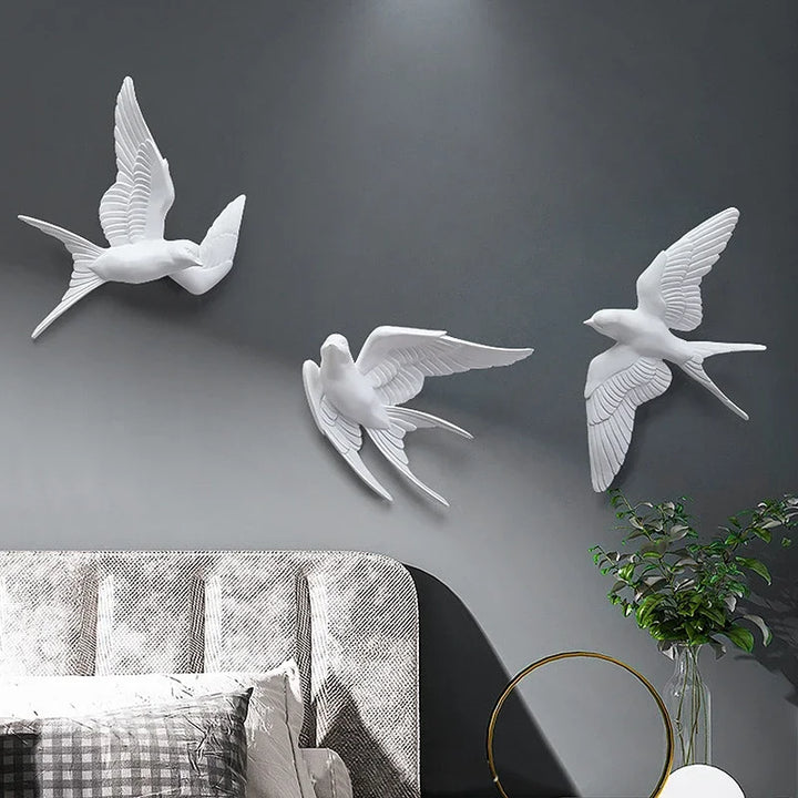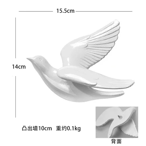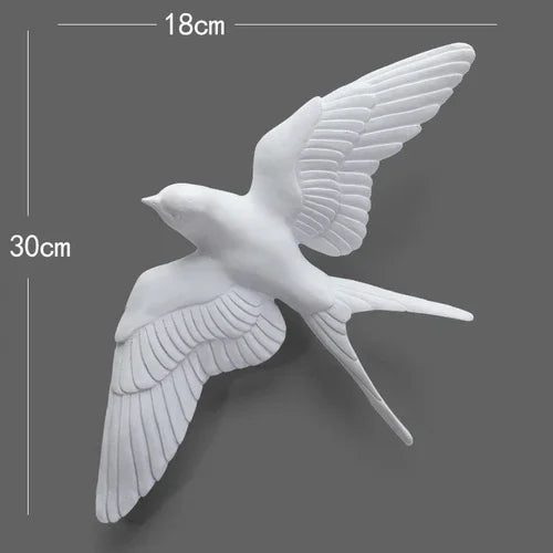 European White Three-dimensional Bird Wall Decoration Living Room Swallow Wall Hanging Abstract Animal Ornaments Home Decoration