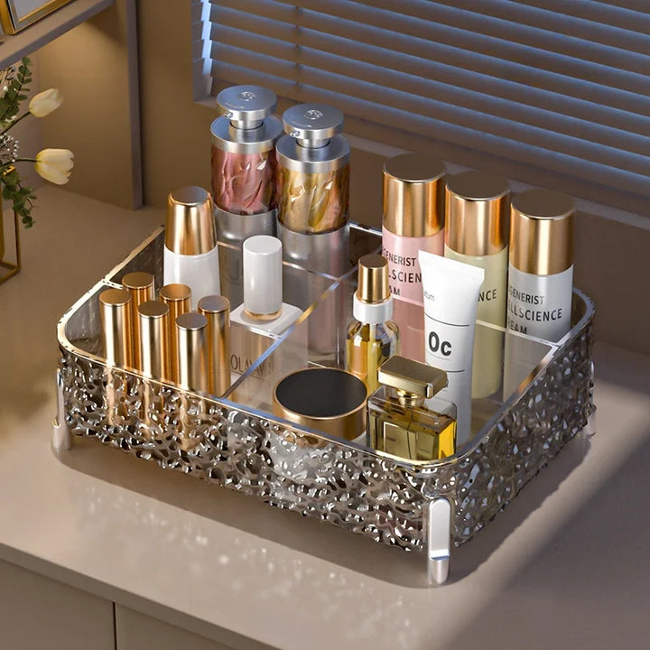 Glacier-print Desktop Makeup Organizer with Legs Clear Lipstick Split Vanity Storage PET Organizer Makeup Organizer Box