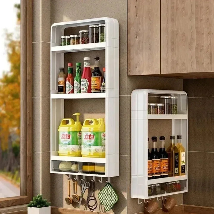 Kitchen Shelf Wall Mounted Multifunctional Wall Mounted Storage Cabinet for Storing Seasoning Products Without Drilling Holes