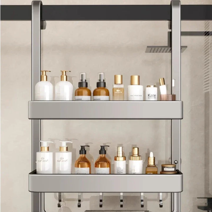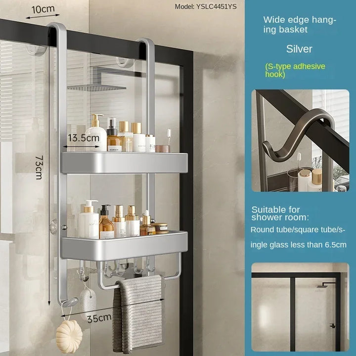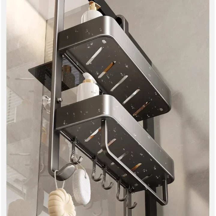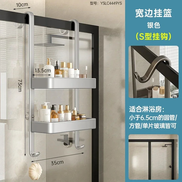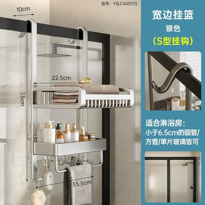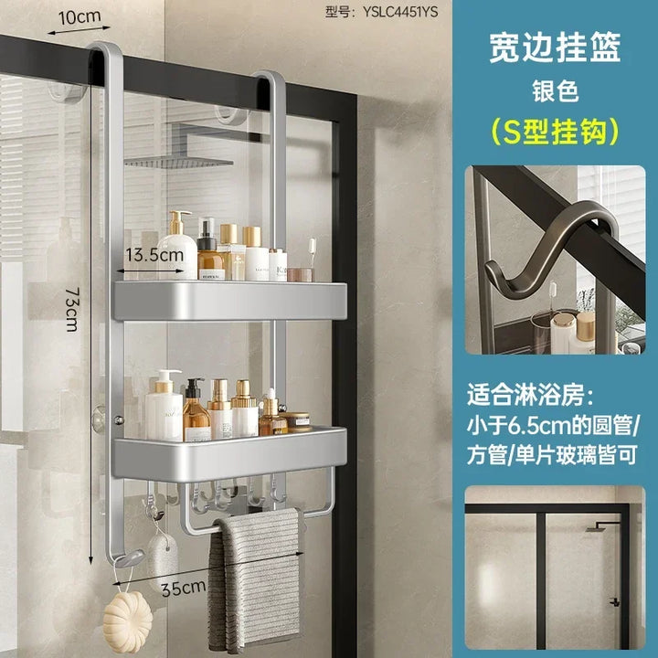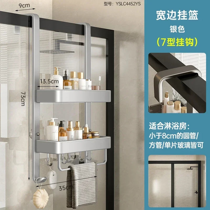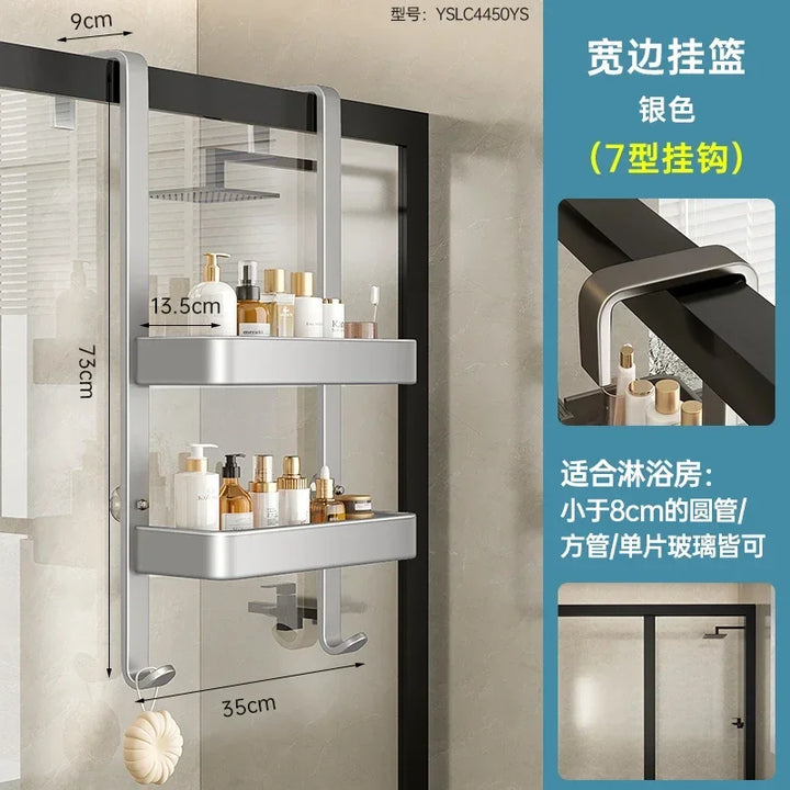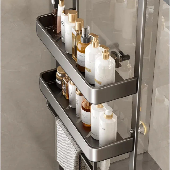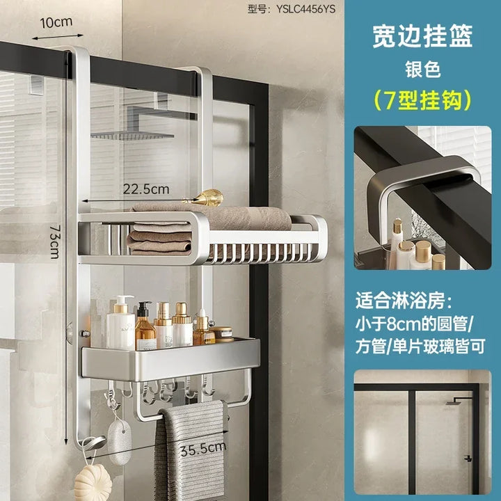No Punch Shower Room Bathroom Shelf Aluminum Storage Shelves Multifunctional Makeup Organizer Stable Load-bearing Towel Holder