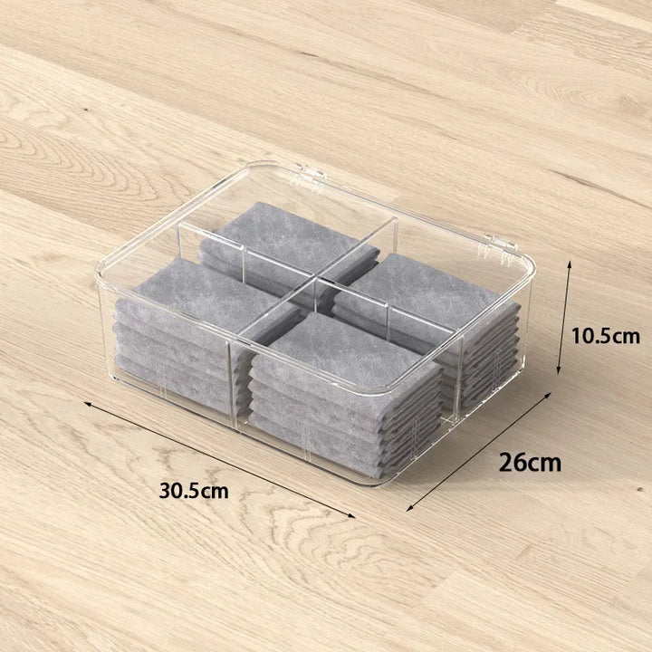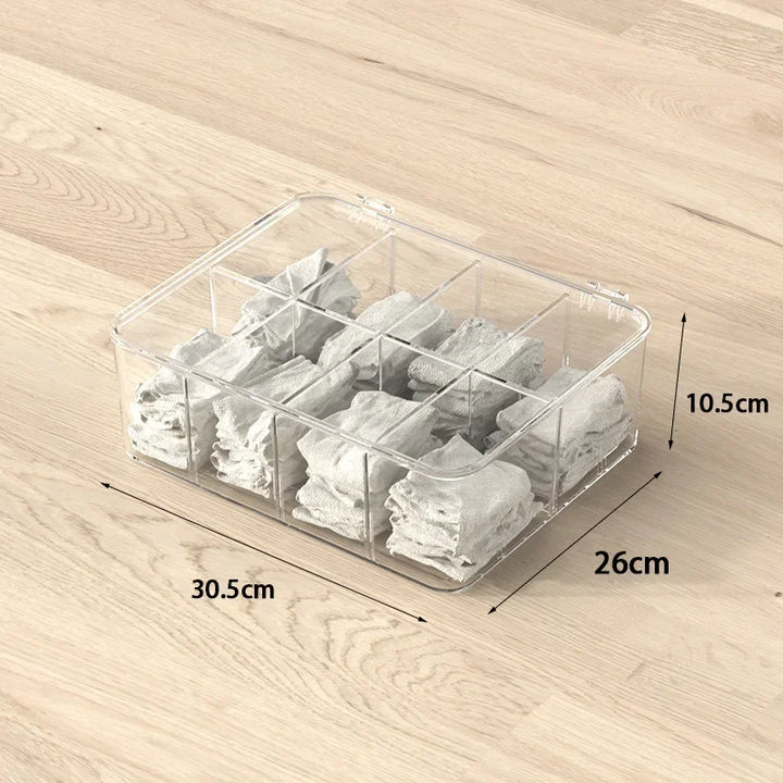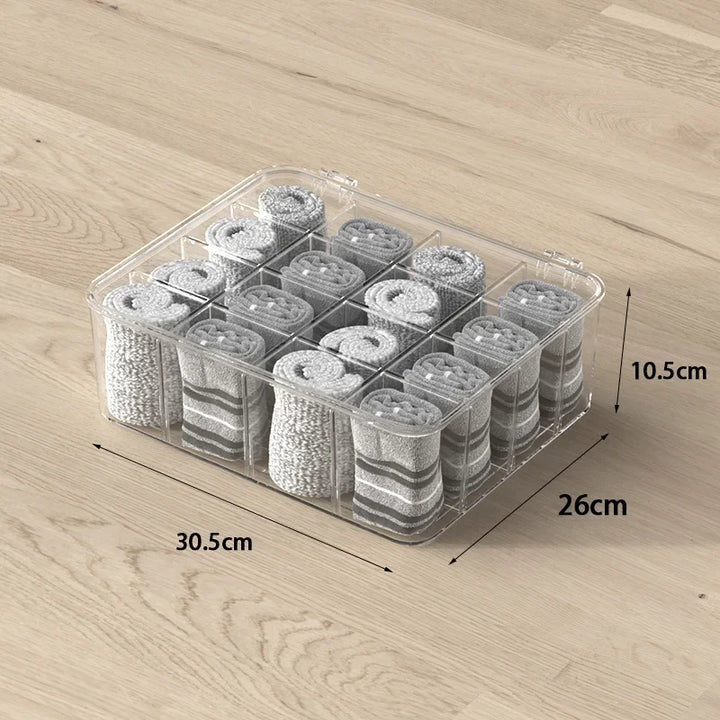 Sock Underwear Organizer, 16 Cell Adjustable Dividers Drawer Organizer for Closet, Stackable Clear Storage Containers with Lids