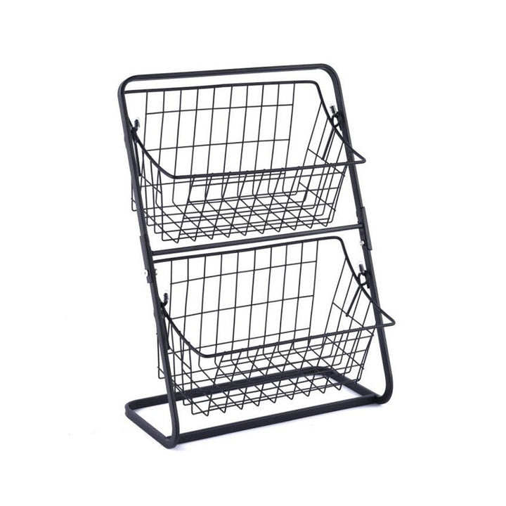Upgrade your kitchen with this 2-tier countertop storage rack, designed to keep fruits, vegetables, and other kitchen essentials neatly organized while promoting freshness. Crafted from durable iron metal with a sleek, modern finish, this rack is both functional and stylish for any home.